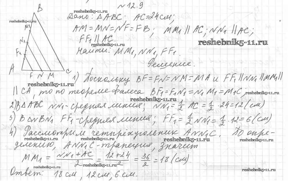 Готовая домашняя работа с ответами по Геометрии за 8 класс Мерзляк, Поляков Учебник Алгоритм успеха Углубленный уровень Вентана-граф 2020 ФГОС - § 12. Теорема Фалеса 9