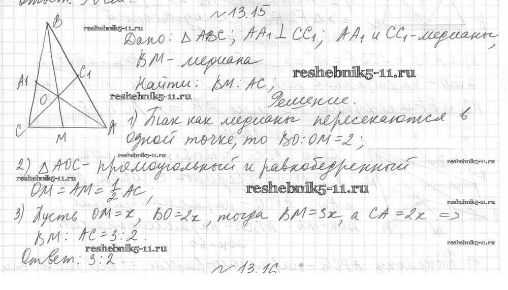 Готовая домашняя работа с ответами по Геометрии за 8 класс Мерзляк, Поляков Учебник Алгоритм успеха Углубленный уровень Вентана-граф 2020 ФГОС - § 13. Теорема о медианах треугольника 15