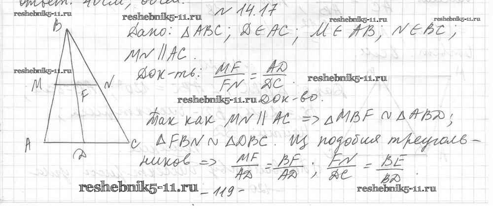 Готовая домашняя работа с ответами по Геометрии за 8 класс Мерзляк, Поляков Учебник Алгоритм успеха Углубленный уровень Вентана-граф 2020 ФГОС - § 14. Подобные треугольники 17