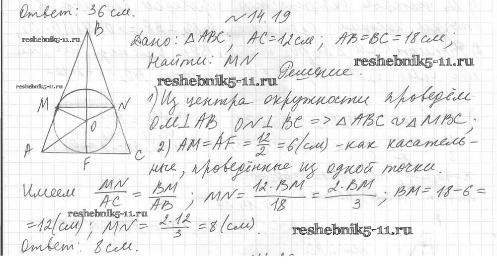 Готовая домашняя работа с ответами по Геометрии за 8 класс Мерзляк, Поляков Учебник Алгоритм успеха Углубленный уровень Вентана-граф 2020 ФГОС - § 14. Подобные треугольники 19