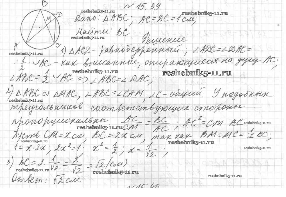 Готовая домашняя работа с ответами по Геометрии за 8 класс Мерзляк, Поляков Учебник Алгоритм успеха Углубленный уровень Вентана-граф 2020 ФГОС - § 15. Первый признак подобия треугольников 39