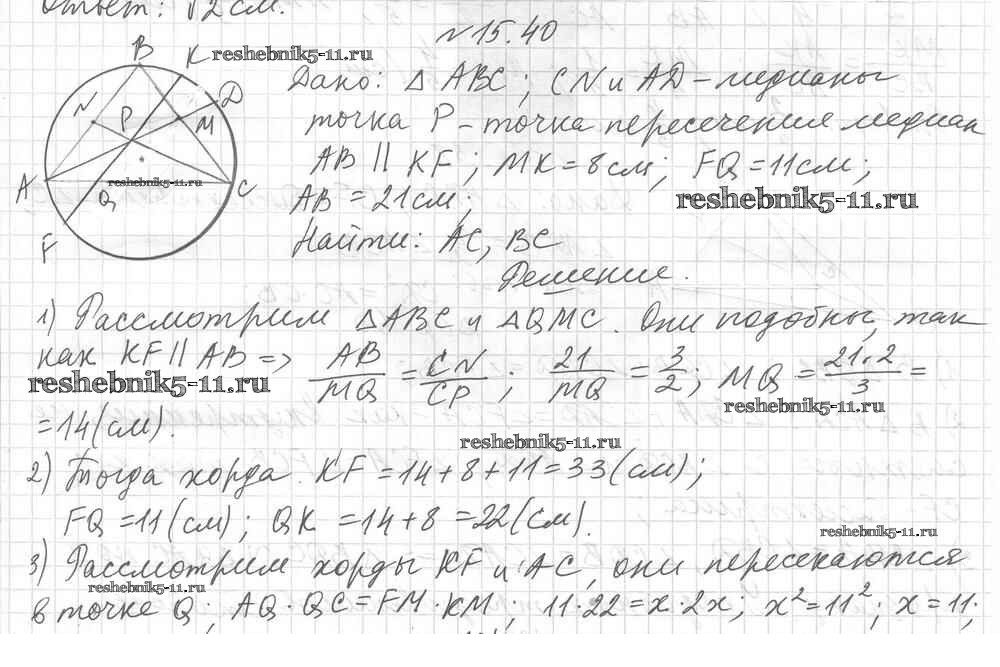 Готовая домашняя работа с ответами по Геометрии за 8 класс Мерзляк, Поляков Учебник Алгоритм успеха Углубленный уровень Вентана-граф 2020 ФГОС - § 15. Первый признак подобия треугольников 40