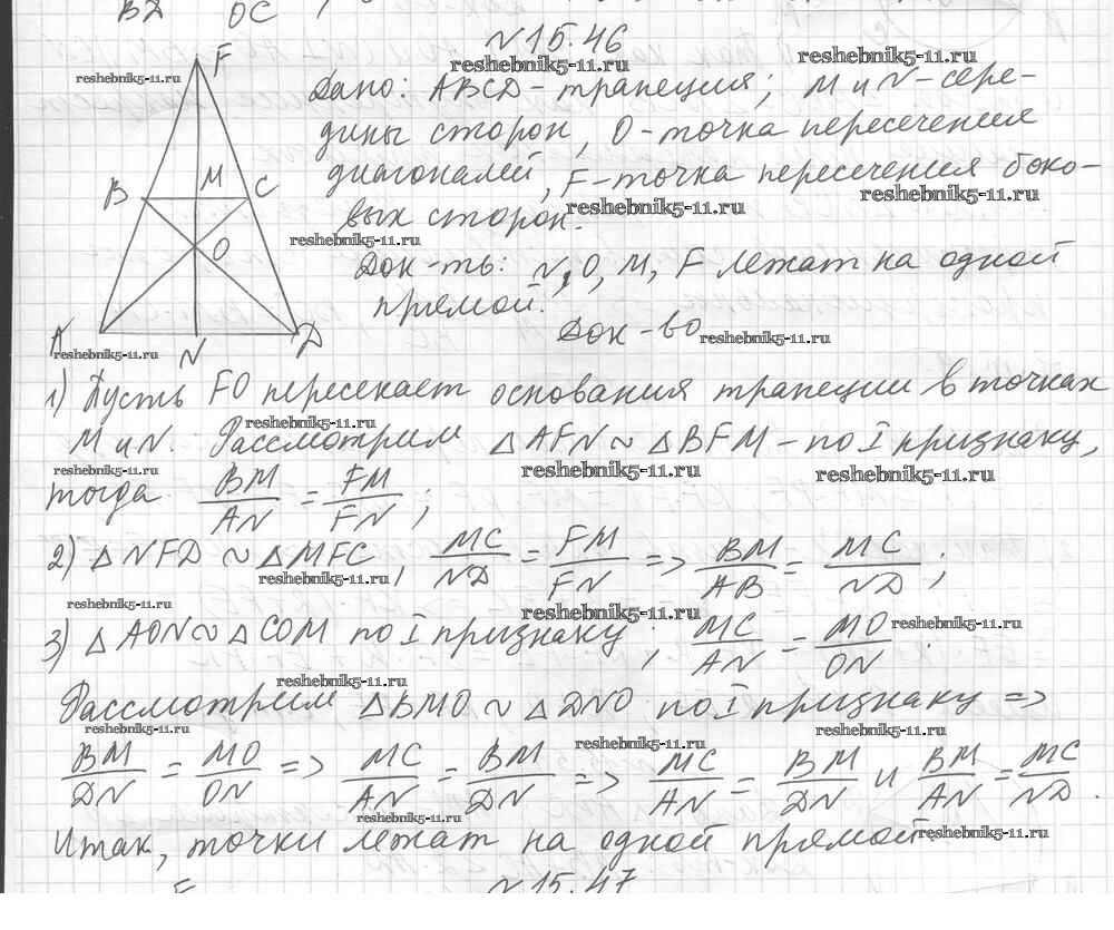 Готовая домашняя работа с ответами по Геометрии за 8 класс Мерзляк, Поляков Учебник Алгоритм успеха Углубленный уровень Вентана-граф 2020 ФГОС - § 15. Первый признак подобия треугольников 46