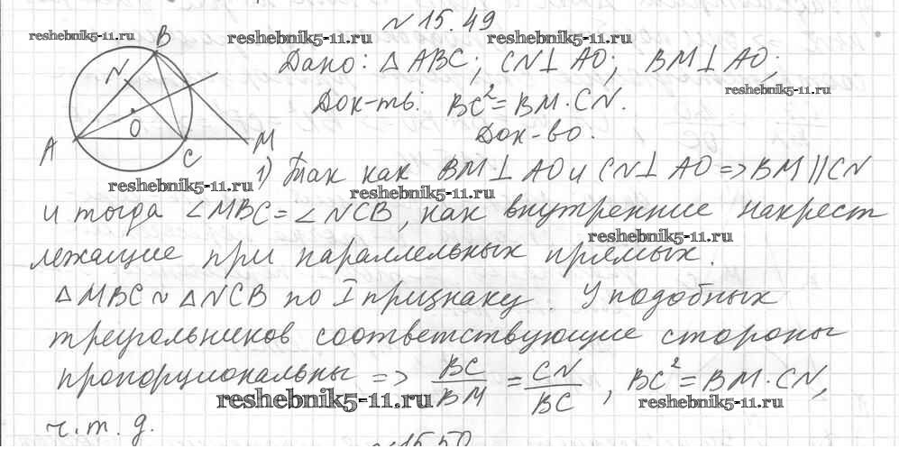 Готовая домашняя работа с ответами по Геометрии за 8 класс Мерзляк, Поляков Учебник Алгоритм успеха Углубленный уровень Вентана-граф 2020 ФГОС - § 15. Первый признак подобия треугольников 49