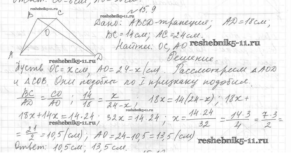 Готовая домашняя работа с ответами по Геометрии за 8 класс Мерзляк, Поляков Учебник Алгоритм успеха Углубленный уровень Вентана-граф 2020 ФГОС - § 15. Первый признак подобия треугольников 9