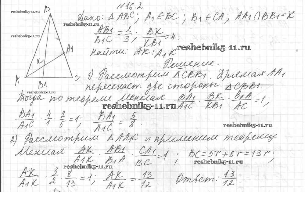 Готовая домашняя работа с ответами по Геометрии за 8 класс Мерзляк, Поляков Учебник Алгоритм успеха Углубленный уровень Вентана-граф 2020 ФГОС - § 16. Теорема Менелая 2