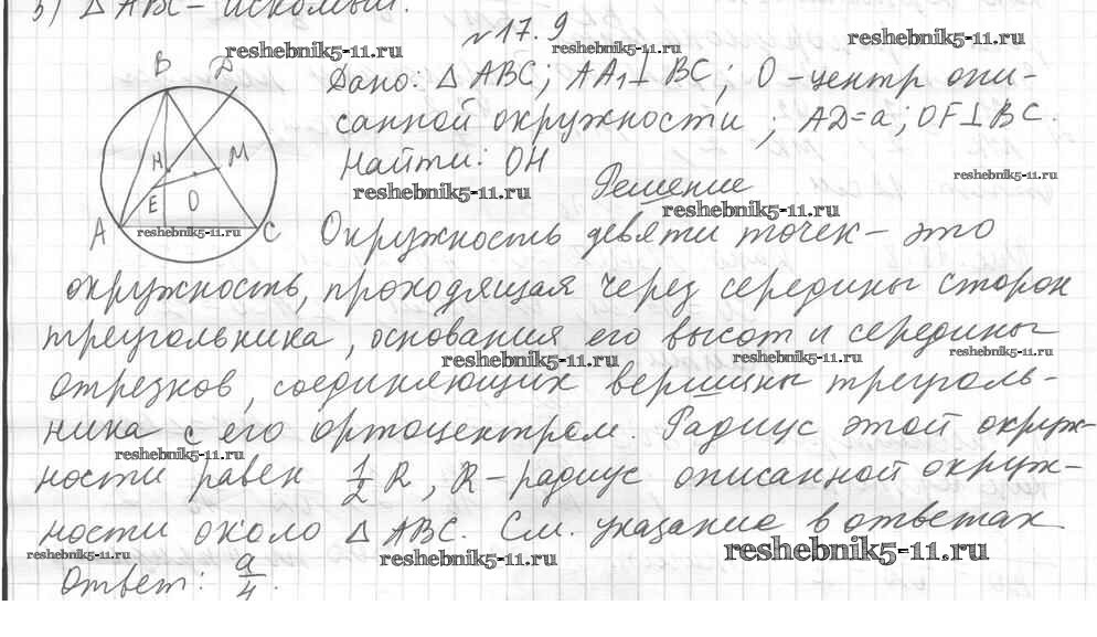 Готовая домашняя работа с ответами по Геометрии за 8 класс Мерзляк, Поляков Учебник Алгоритм успеха Углубленный уровень Вентана-граф 2020 ФГОС - § 17. Прямая Эйлера 9