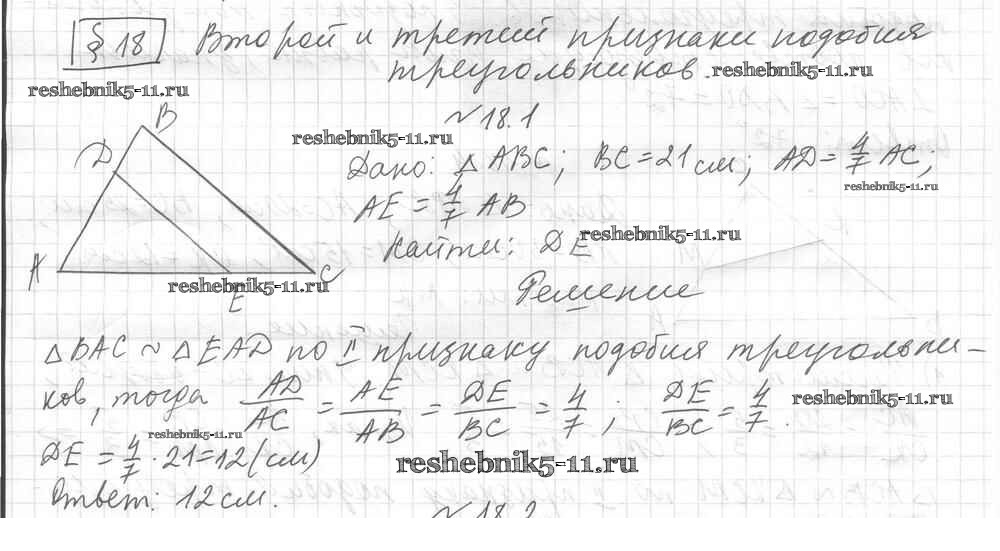 Готовая домашняя работа с ответами по Геометрии за 8 класс Мерзляк, Поляков Учебник Алгоритм успеха Углубленный уровень Вентана-граф 2020 ФГОС - § 18. Второй и третий признаки подобия треугольников 1
