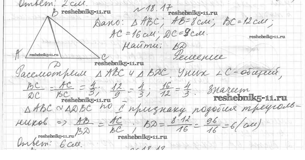Готовая домашняя работа с ответами по Геометрии за 8 класс Мерзляк, Поляков Учебник Алгоритм успеха Углубленный уровень Вентана-граф 2020 ФГОС - § 18. Второй и третий признаки подобия треугольников 17