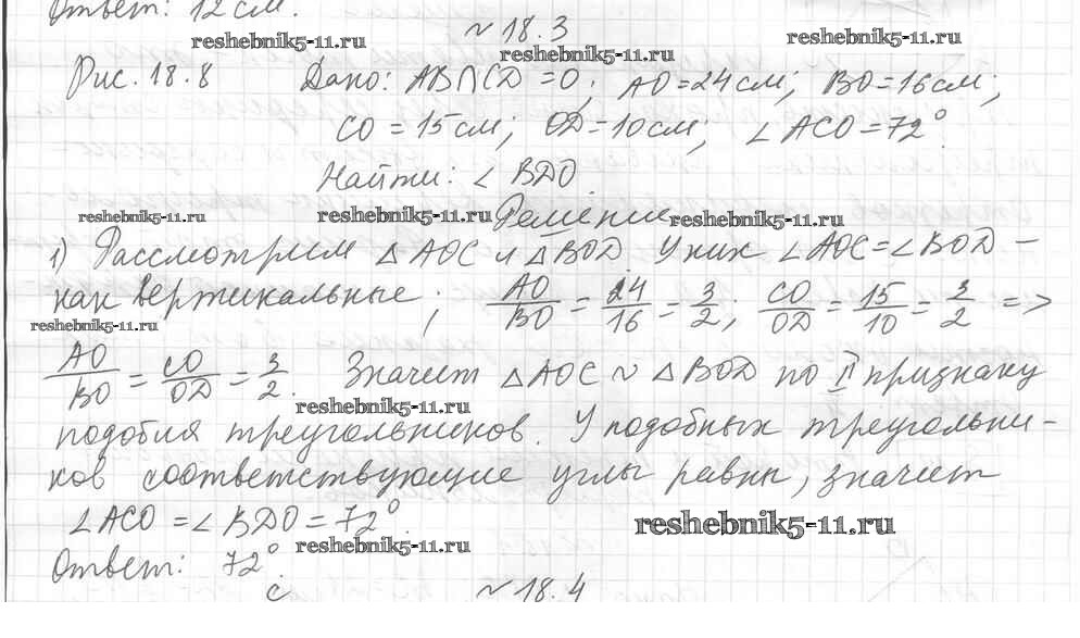 Готовая домашняя работа с ответами по Геометрии за 8 класс Мерзляк, Поляков Учебник Алгоритм успеха Углубленный уровень Вентана-граф 2020 ФГОС - § 18. Второй и третий признаки подобия треугольников 3
