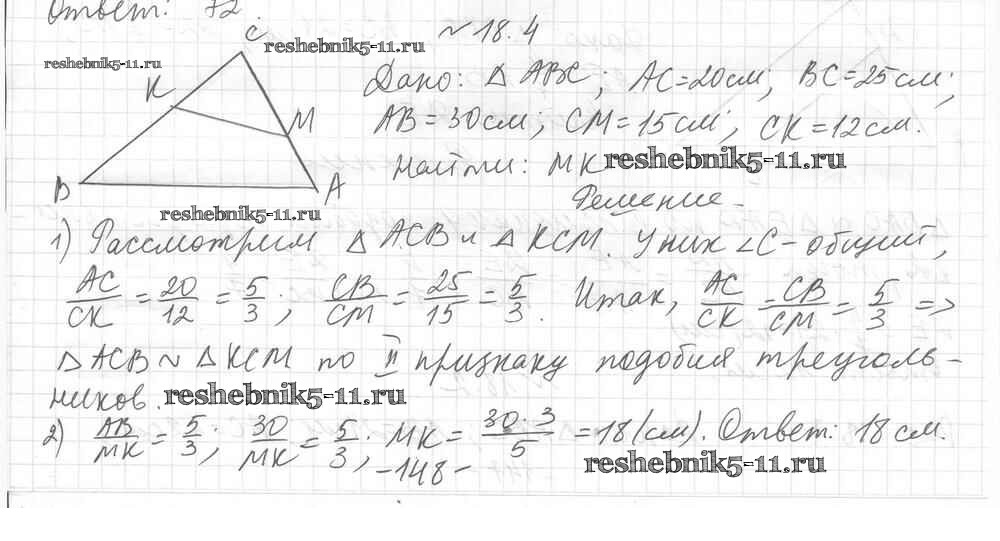 Готовая домашняя работа с ответами по Геометрии за 8 класс Мерзляк, Поляков Учебник Алгоритм успеха Углубленный уровень Вентана-граф 2020 ФГОС - § 18. Второй и третий признаки подобия треугольников 4