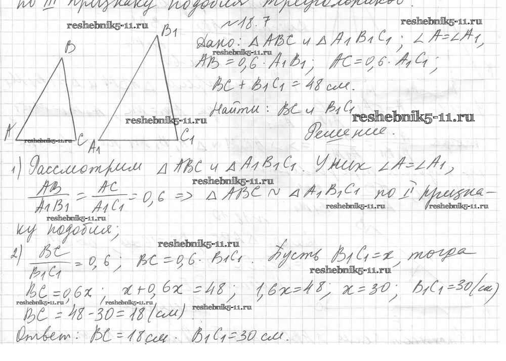Готовая домашняя работа с ответами по Геометрии за 8 класс Мерзляк, Поляков Учебник Алгоритм успеха Углубленный уровень Вентана-граф 2020 ФГОС - § 18. Второй и третий признаки подобия треугольников 7