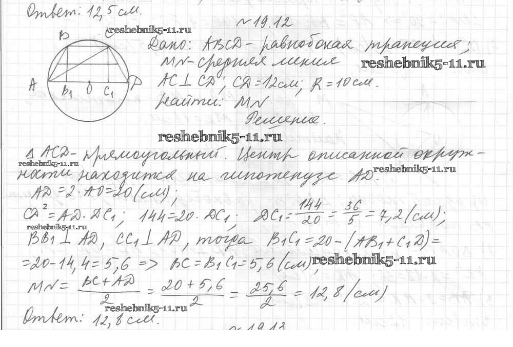 Геометрия за 8 класс Мерзляк Учебник Алгоритм успеха Углубленный уровень Вентана-граф § 19 12