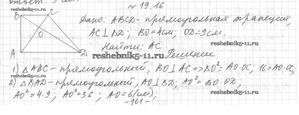 Готовая домашняя работа с ответами по Геометрии за 8 класс Мерзляк, Поляков Учебник Алгоритм успеха Углубленный уровень Вентана-граф 2020 ФГОС - § 19. Метрические соотношения в прямоугольном треугольнике 16