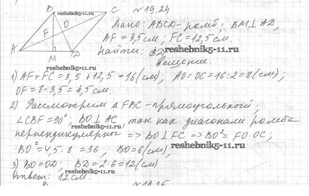Готовая домашняя работа с ответами по Геометрии за 8 класс Мерзляк, Поляков Учебник Алгоритм успеха Углубленный уровень Вентана-граф 2020 ФГОС - § 19. Метрические соотношения в прямоугольном треугольнике 24