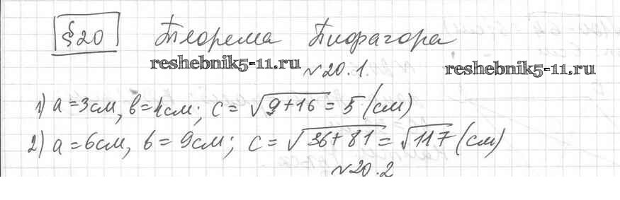 Готовая домашняя работа с ответами по Геометрии за 8 класс Мерзляк, Поляков Учебник Алгоритм успеха Углубленный уровень Вентана-граф 2020 ФГОС - § 20. Теорема Пифагора 1