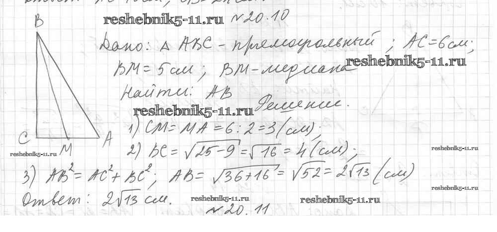 Готовая домашняя работа с ответами по Геометрии за 8 класс Мерзляк, Поляков Учебник Алгоритм успеха Углубленный уровень Вентана-граф 2020 ФГОС - § 20. Теорема Пифагора 10
