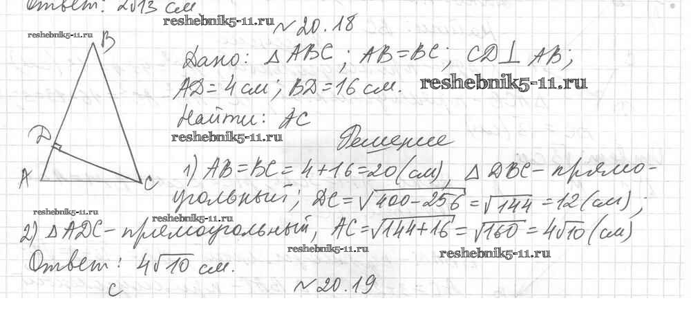 Готовая домашняя работа с ответами по Геометрии за 8 класс Мерзляк, Поляков Учебник Алгоритм успеха Углубленный уровень Вентана-граф 2020 ФГОС - § 20. Теорема Пифагора 18