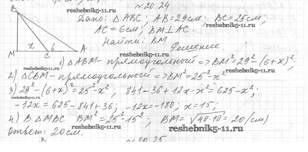 Готовая домашняя работа с ответами по Геометрии за 8 класс Мерзляк, Поляков Учебник Алгоритм успеха Углубленный уровень Вентана-граф 2020 ФГОС - § 20. Теорема Пифагора 24