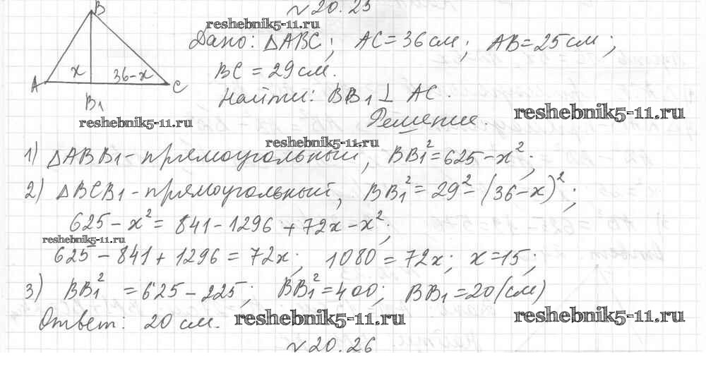 Готовая домашняя работа с ответами по Геометрии за 8 класс Мерзляк, Поляков Учебник Алгоритм успеха Углубленный уровень Вентана-граф 2020 ФГОС - § 20. Теорема Пифагора 25