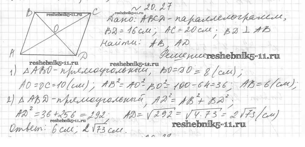 Готовая домашняя работа с ответами по Геометрии за 8 класс Мерзляк, Поляков Учебник Алгоритм успеха Углубленный уровень Вентана-граф 2020 ФГОС - § 20. Теорема Пифагора 27