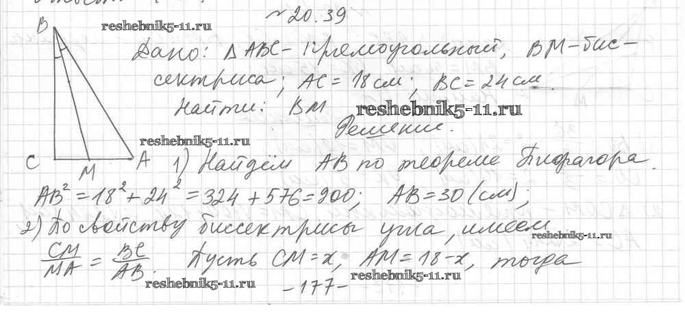 Готовая домашняя работа с ответами по Геометрии за 8 класс Мерзляк, Поляков Учебник Алгоритм успеха Углубленный уровень Вентана-граф 2020 ФГОС - § 20. Теорема Пифагора 39