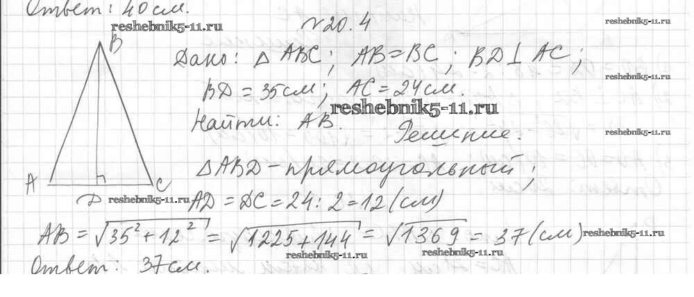 Готовая домашняя работа с ответами по Геометрии за 8 класс Мерзляк, Поляков Учебник Алгоритм успеха Углубленный уровень Вентана-граф 2020 ФГОС - § 20. Теорема Пифагора 4