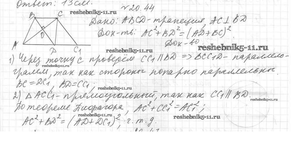 Готовая домашняя работа с ответами по Геометрии за 8 класс Мерзляк, Поляков Учебник Алгоритм успеха Углубленный уровень Вентана-граф 2020 ФГОС - § 20. Теорема Пифагора 44
