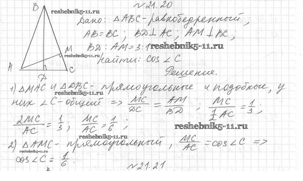 Готовая домашняя работа с ответами по Геометрии за 8 класс Мерзляк, Поляков Учебник Алгоритм успеха Углубленный уровень Вентана-граф 2020 ФГОС - § 21. Тригонометрические функции острого угла прямоугольного треугольника 20