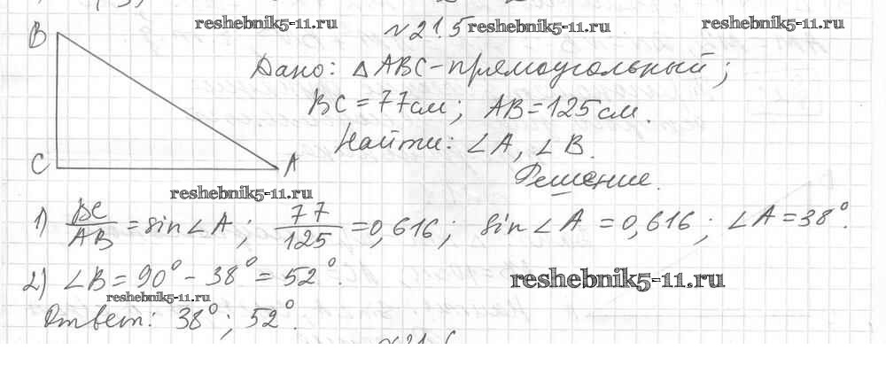 Готовая домашняя работа с ответами по Геометрии за 8 класс Мерзляк, Поляков Учебник Алгоритм успеха Углубленный уровень Вентана-граф 2020 ФГОС - § 21. Тригонометрические функции острого угла прямоугольного треугольника 5
