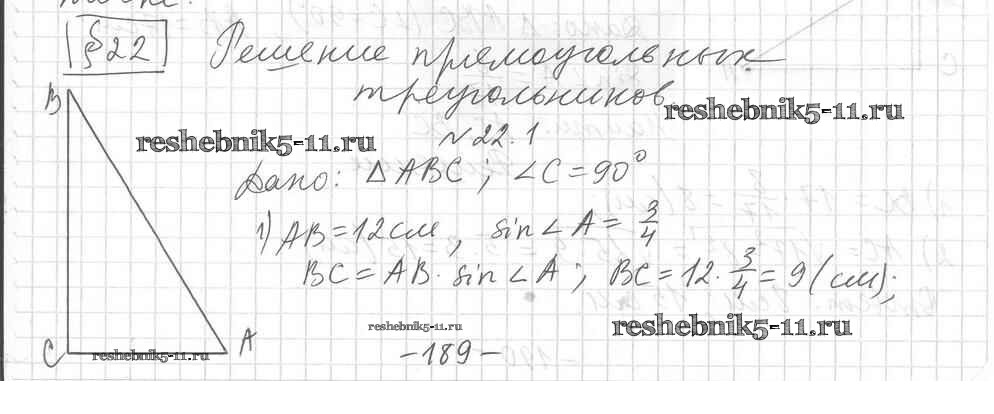Готовая домашняя работа с ответами по Геометрии за 8 класс Мерзляк, Поляков Учебник Алгоритм успеха Углубленный уровень Вентана-граф 2020 ФГОС - § 22. Решение прямоугольных треугольников 1