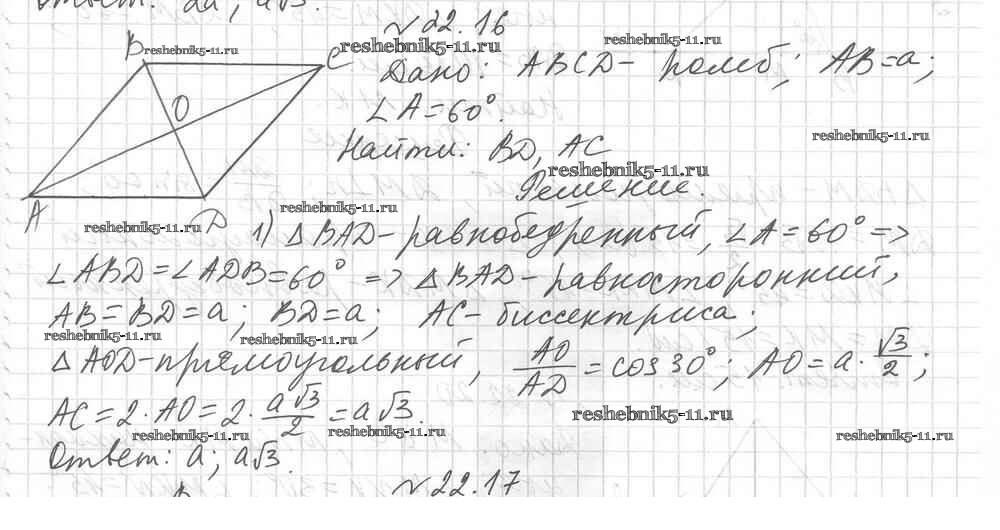Готовая домашняя работа с ответами по Геометрии за 8 класс Мерзляк, Поляков Учебник Алгоритм успеха Углубленный уровень Вентана-граф 2020 ФГОС - § 22. Решение прямоугольных треугольников 16
