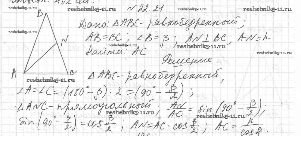 Готовая домашняя работа с ответами по Геометрии за 8 класс Мерзляк, Поляков Учебник Алгоритм успеха Углубленный уровень Вентана-граф 2020 ФГОС - § 22. Решение прямоугольных треугольников 21