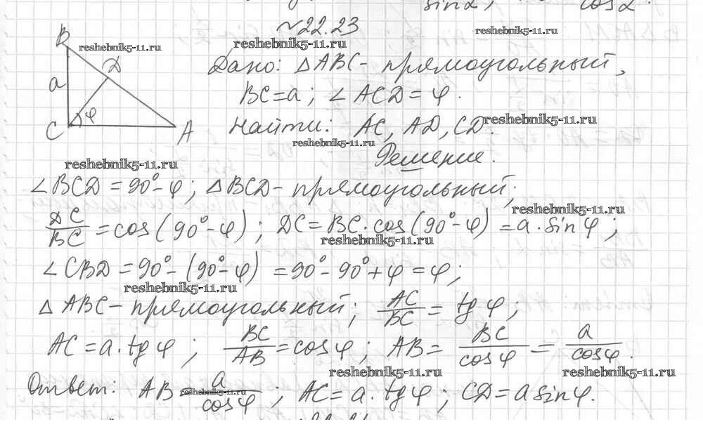Готовая домашняя работа с ответами по Геометрии за 8 класс Мерзляк, Поляков Учебник Алгоритм успеха Углубленный уровень Вентана-граф 2020 ФГОС - § 22. Решение прямоугольных треугольников 23