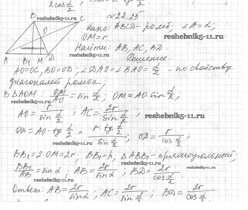 Готовая домашняя работа с ответами по Геометрии за 8 класс Мерзляк, Поляков Учебник Алгоритм успеха Углубленный уровень Вентана-граф 2020 ФГОС - § 22. Решение прямоугольных треугольников 25