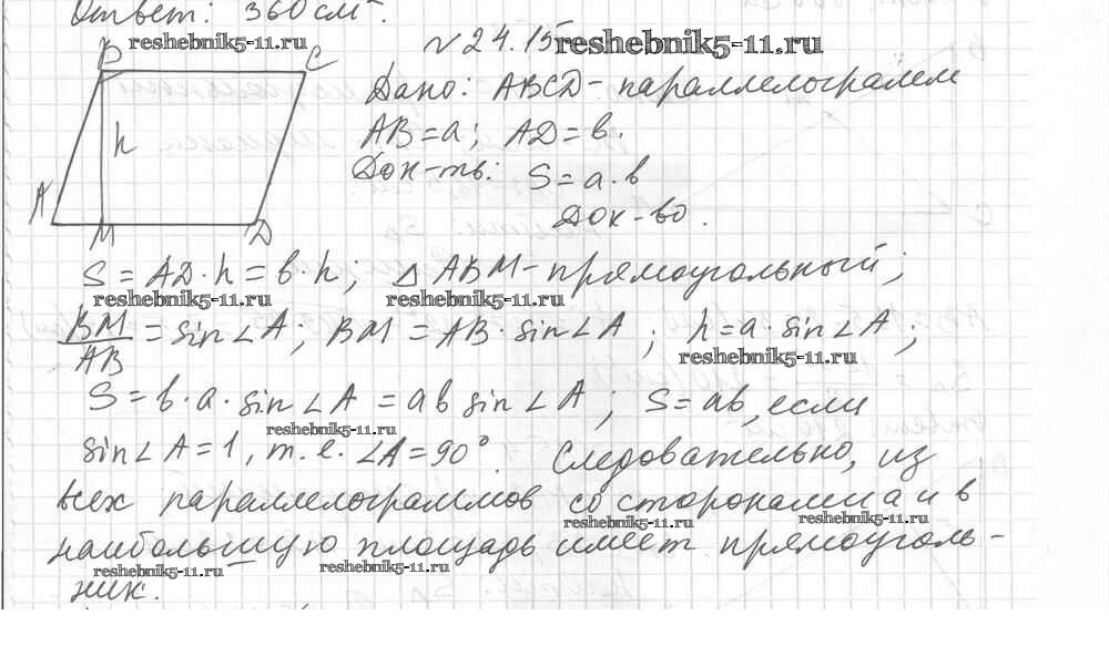 Готовая домашняя работа с ответами по Геометрии за 8 класс Мерзляк, Поляков Учебник Алгоритм успеха Углубленный уровень Вентана-граф 2020 ФГОС - § 24. Площадь параллелограмма 15