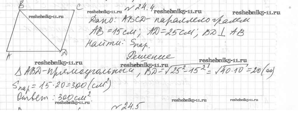 Готовая домашняя работа с ответами по Геометрии за 8 класс Мерзляк, Поляков Учебник Алгоритм успеха Углубленный уровень Вентана-граф 2020 ФГОС - § 24. Площадь параллелограмма 4