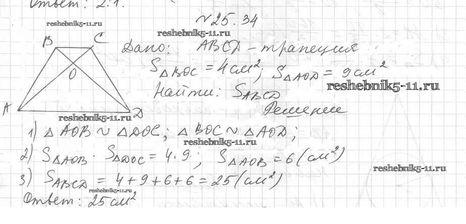 Готовая домашняя работа с ответами по Геометрии за 8 класс Мерзляк, Поляков Учебник Алгоритм успеха Углубленный уровень Вентана-граф 2020 ФГОС - § 25. Площадь треугольника 34