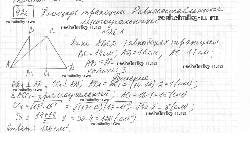 Готовая домашняя работа с ответами по Геометрии за 8 класс Мерзляк, Поляков Учебник Алгоритм успеха Углубленный уровень Вентана-граф 2020 ФГОС - § 26. Площадь трапеции 1