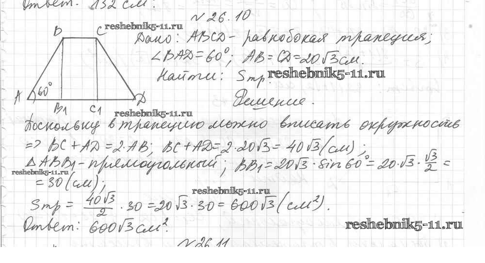 Готовая домашняя работа с ответами по Геометрии за 8 класс Мерзляк, Поляков Учебник Алгоритм успеха Углубленный уровень Вентана-граф 2020 ФГОС - § 26. Площадь трапеции 10