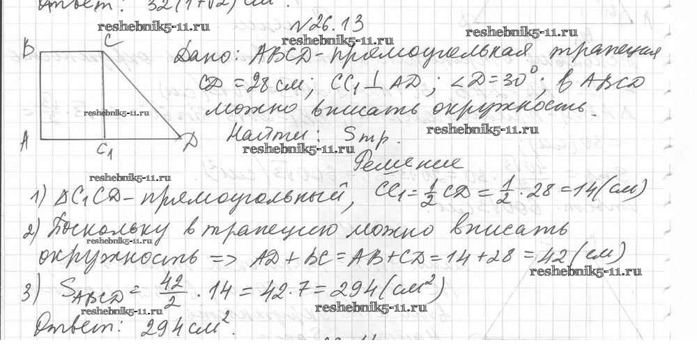 Готовая домашняя работа с ответами по Геометрии за 8 класс Мерзляк, Поляков Учебник Алгоритм успеха Углубленный уровень Вентана-граф 2020 ФГОС - § 26. Площадь трапеции 13