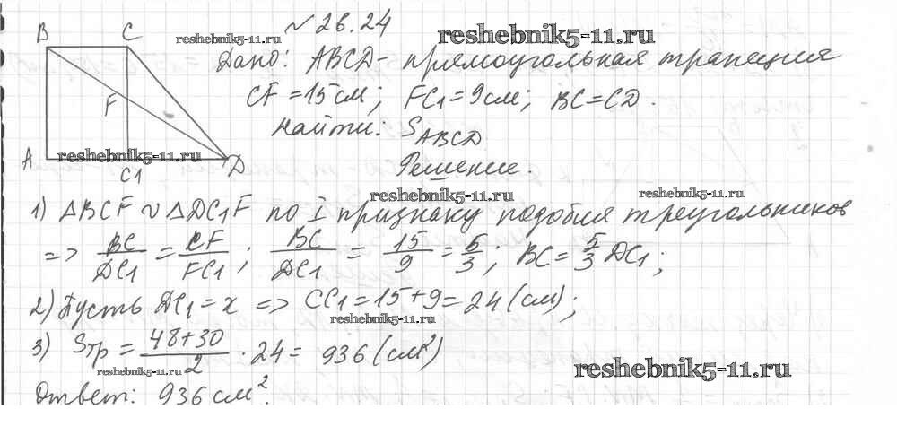 Готовая домашняя работа с ответами по Геометрии за 8 класс Мерзляк, Поляков Учебник Алгоритм успеха Углубленный уровень Вентана-граф 2020 ФГОС - § 26. Площадь трапеции 24