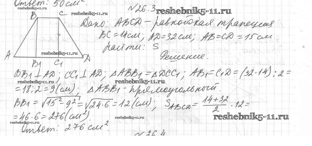 Готовая домашняя работа с ответами по Геометрии за 8 класс Мерзляк, Поляков Учебник Алгоритм успеха Углубленный уровень Вентана-граф 2020 ФГОС - § 26. Площадь трапеции 3