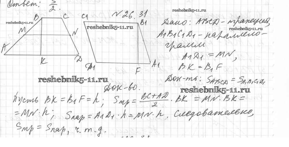 Готовая домашняя работа с ответами по Геометрии за 8 класс Мерзляк, Поляков Учебник Алгоритм успеха Углубленный уровень Вентана-граф 2020 ФГОС - § 26. Площадь трапеции 31
