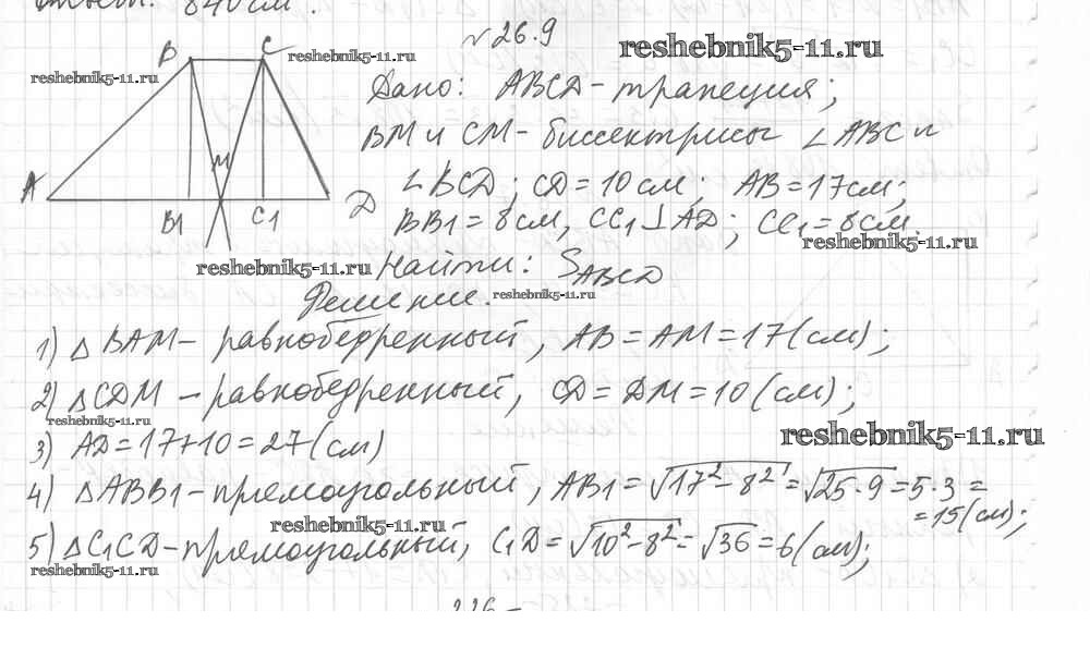 Готовая домашняя работа с ответами по Геометрии за 8 класс Мерзляк, Поляков Учебник Алгоритм успеха Углубленный уровень Вентана-граф 2020 ФГОС - § 26. Площадь трапеции 9