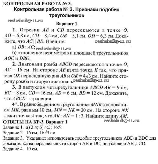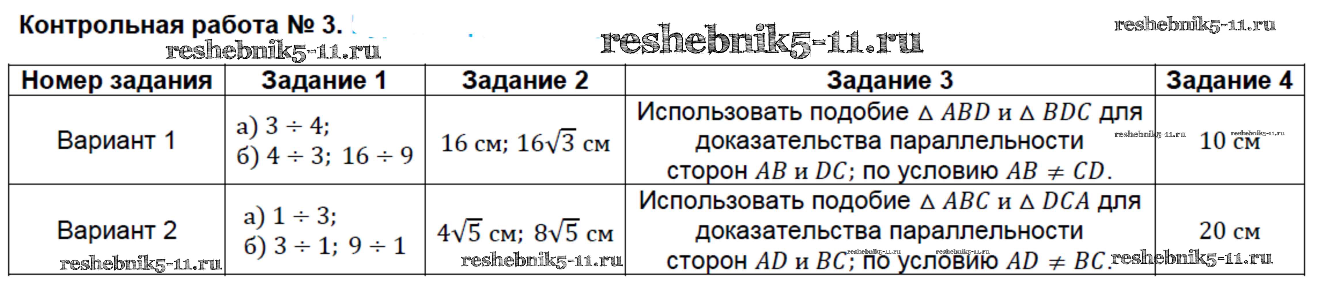 Готовая домашняя работа с ответами по Геометрии за 8 класс Гаврилова Контрольно-измерительные материалы (КИМ) ВАКО 2018 ФГОС - Контрольные работы КР-3