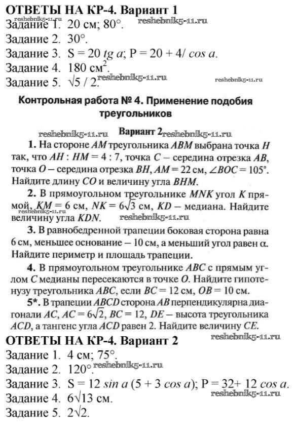 Готовая домашняя работа с ответами по Геометрии за 8 класс Гаврилова Контрольно-измерительные материалы (КИМ) ВАКО 2018 ФГОС - Контрольные работы КР-4