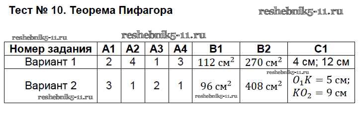 Решебник №2 / тест / тест №10. Теорема Пифагора
