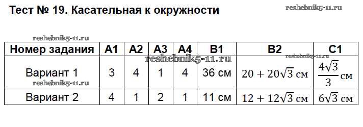 Решебник №2 / тест / тест №19. Касательная к окружности