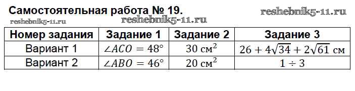 Готовая домашняя работа с ответами по Геометрии за 8 класс Гаврилова Контрольно-измерительные материалы (КИМ) ВАКО 2018 ФГОС - Самостоятельные работы СР-19